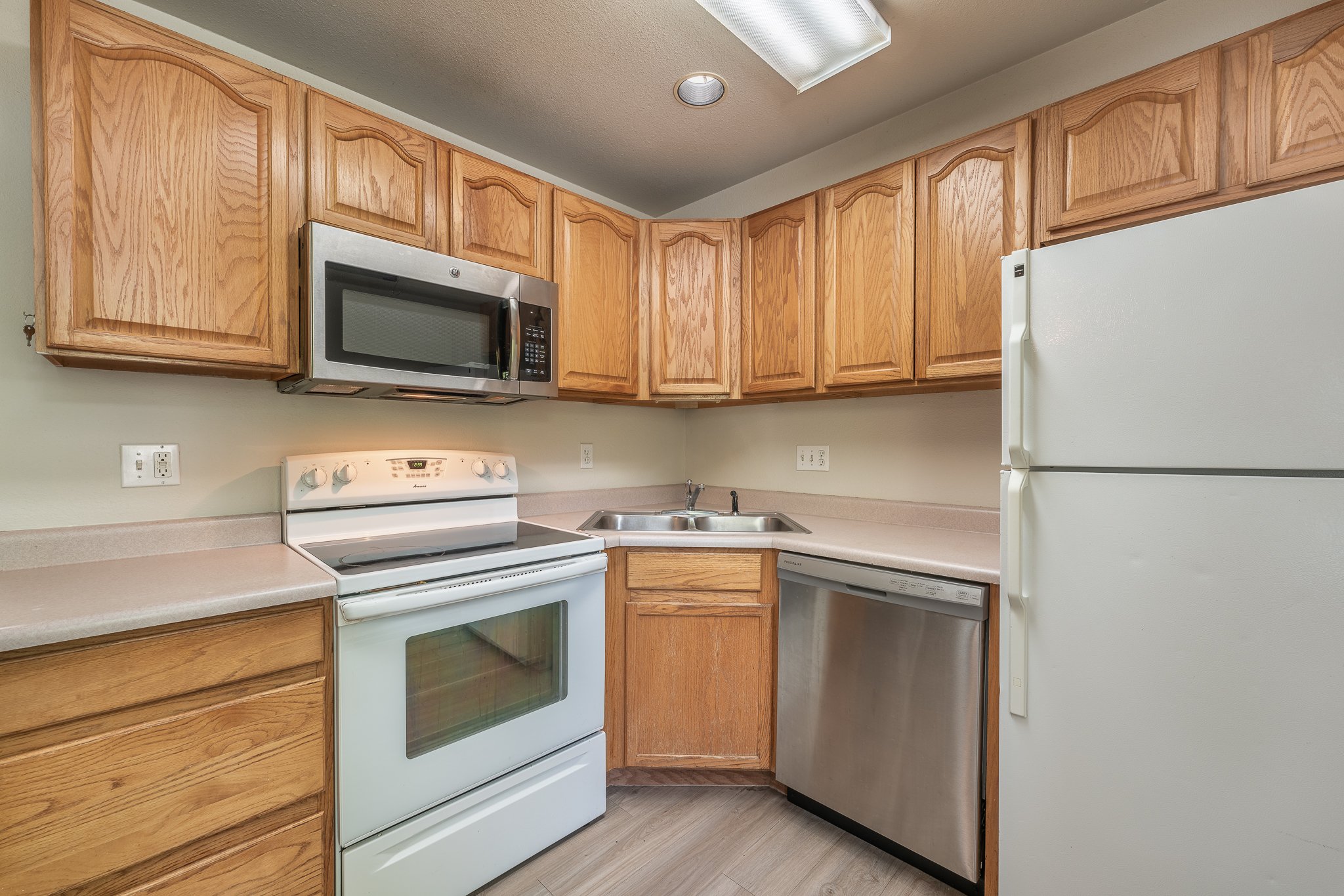 Hardwood floors in kitchens and living rooms
